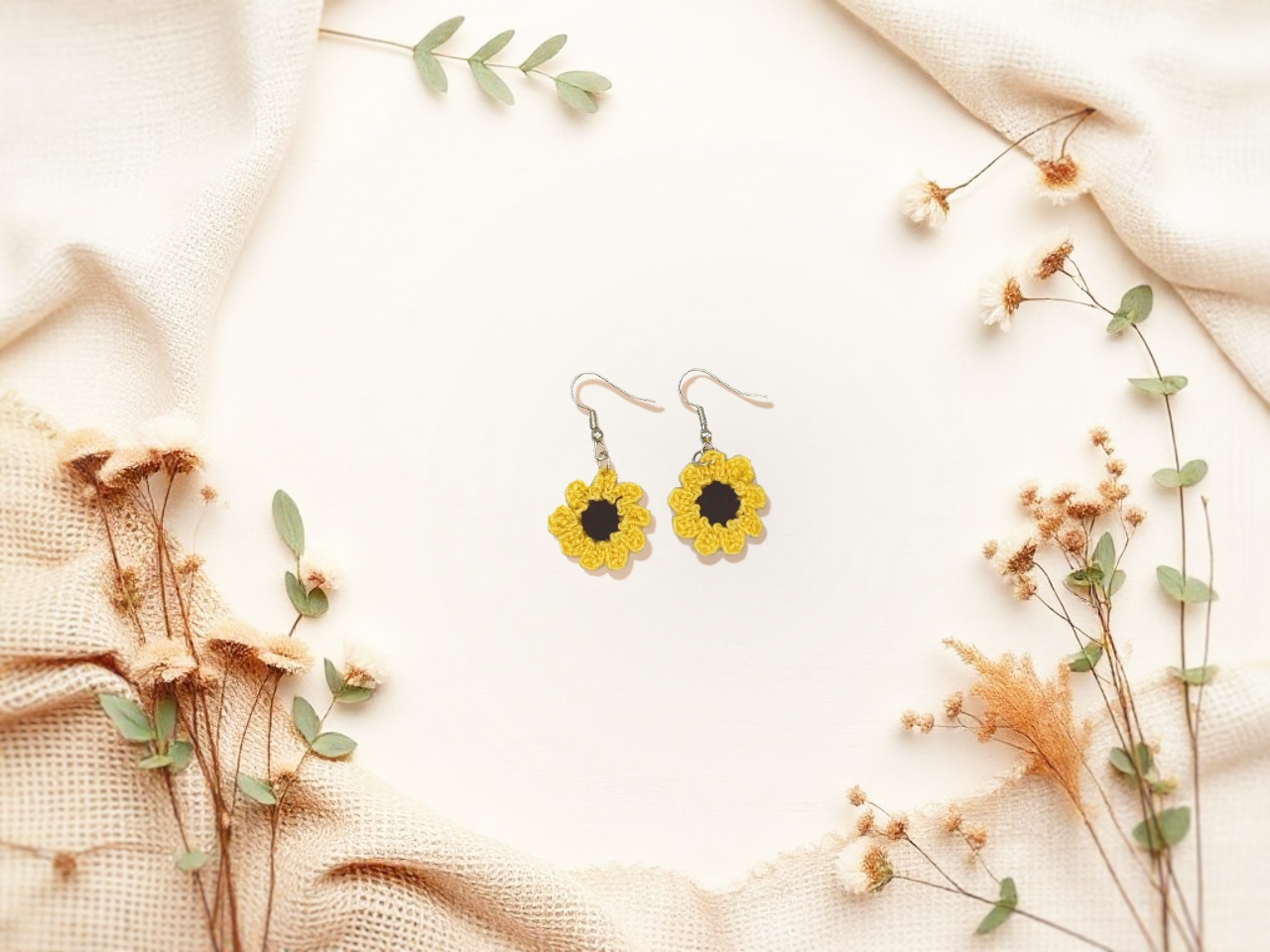 • ONE pair of crochet sunflower earrings